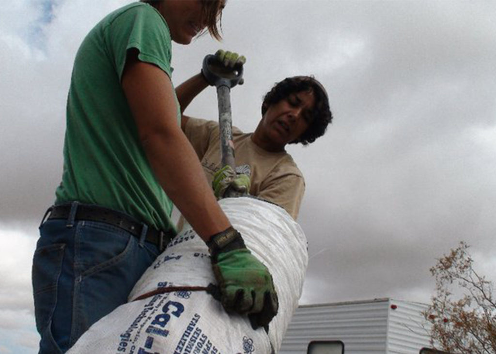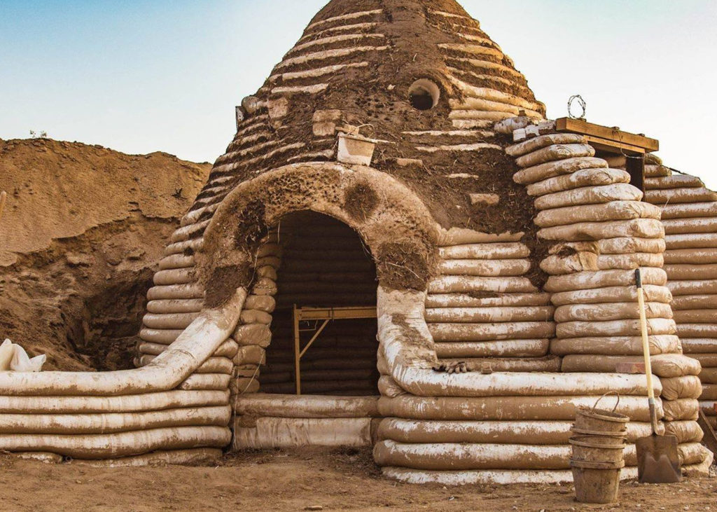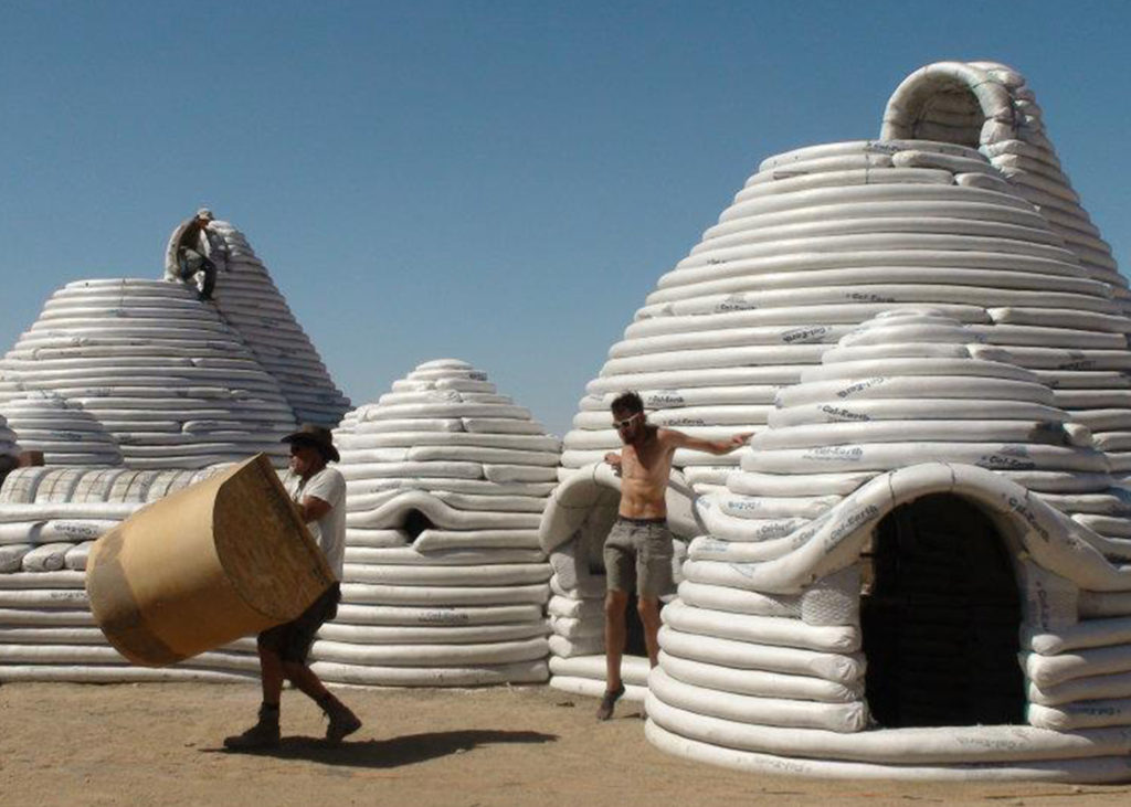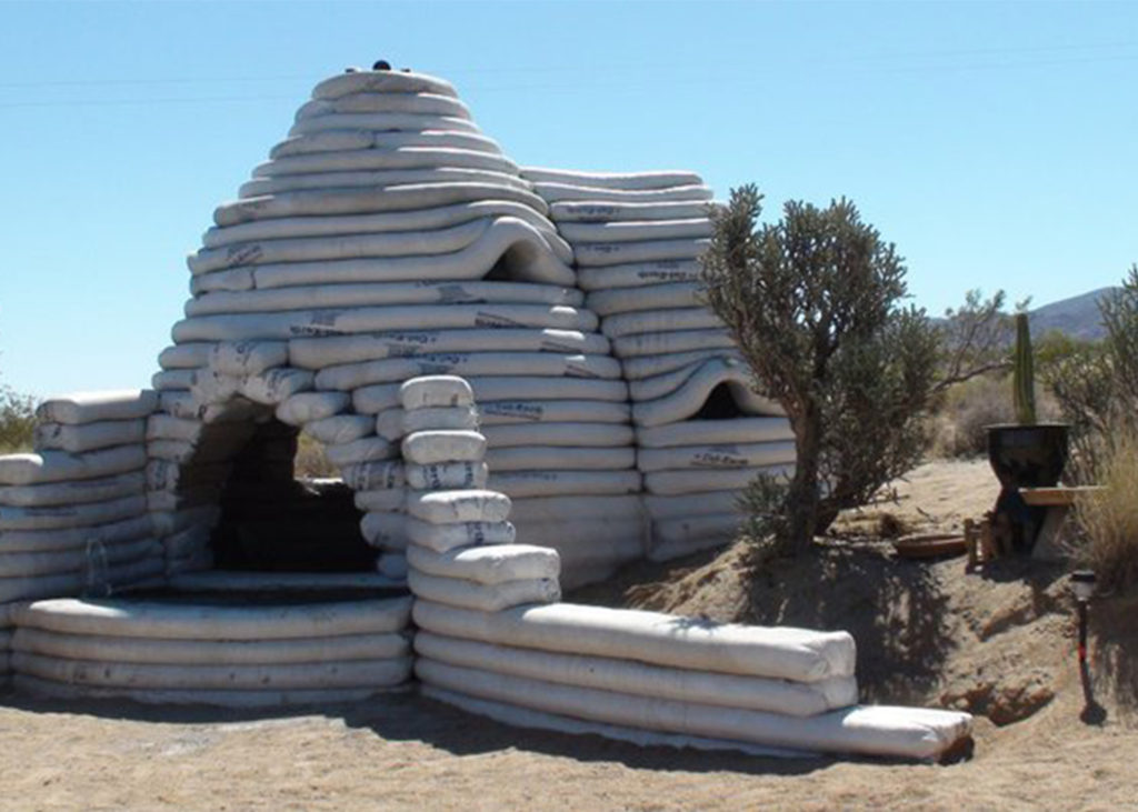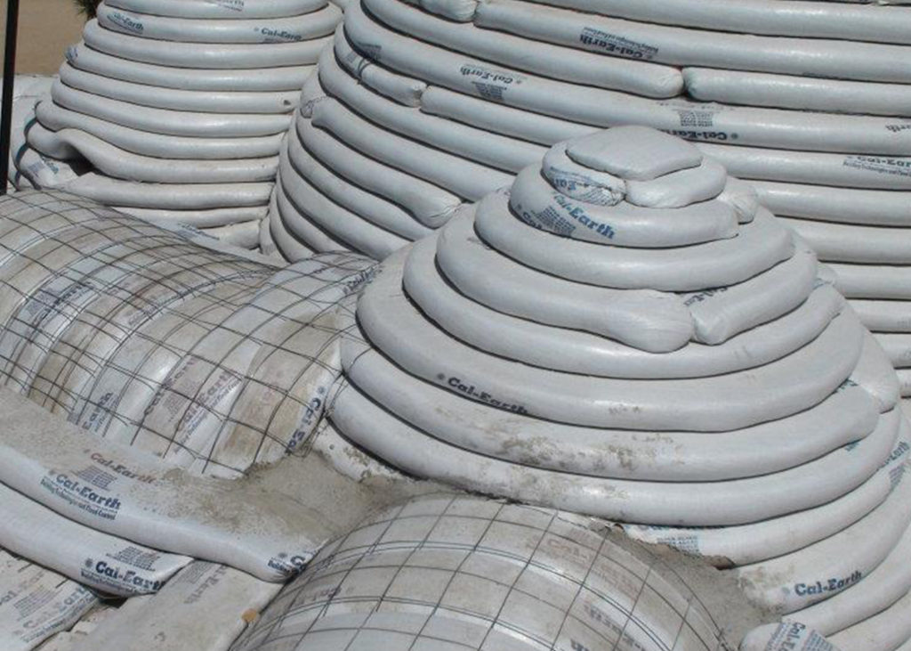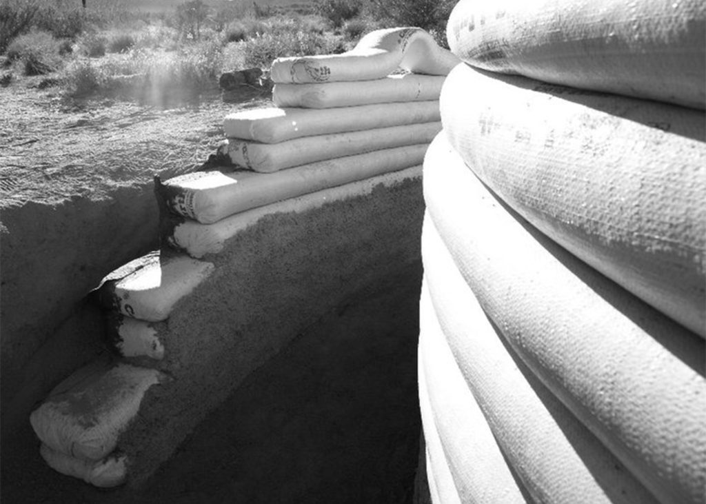 All the structures were built using minimal resources, materials, and supplies that are easily accessible and 85% of materials used to build the structures were from excavated earth here on site. The long continuous sandbags were filled with a coffee can at a time.